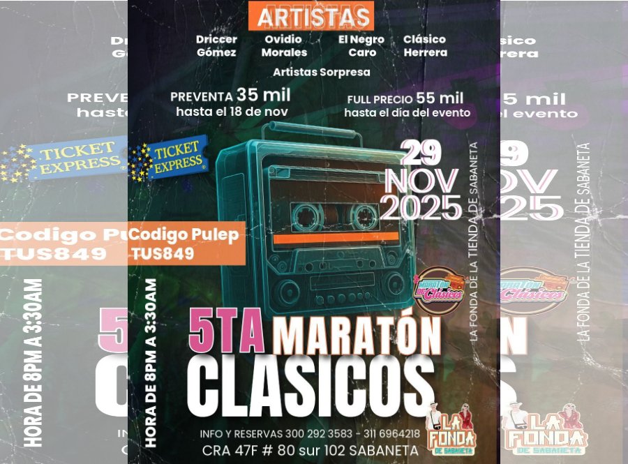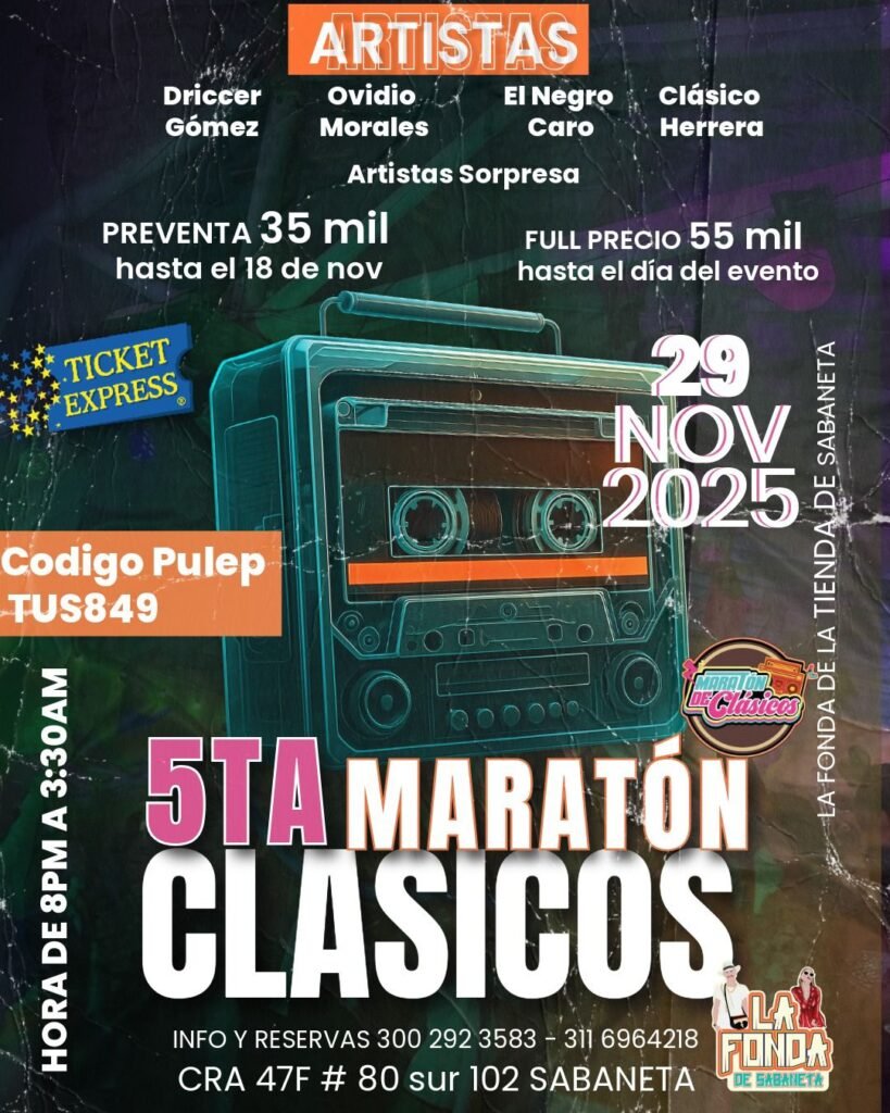 La Fonda de Sabaneta se prepara para vivir el evento más esperado por los fanáticos de los Clásicos de todos los tiempos a: la 5ta Maratón de Clásicos, una celebración que promete encender la rumba con los éxitos que han marcado generaciones.