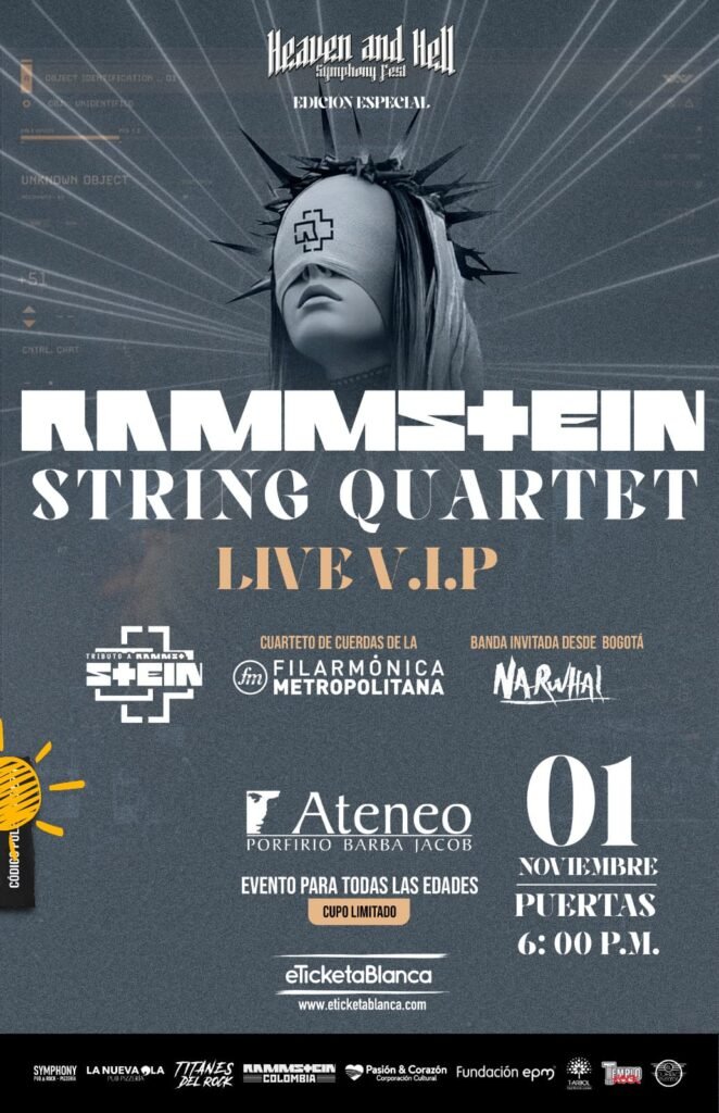 El poder y misticismo de Rammstein llega en un show intimo VIP con un formato de talla internacional, Stein (Uno de los más grandes tributos a Rammstein de Colombia) junto a un cuarteto de cuerdas de la filarmónica metropolitana darán vida a una noche inolvidable en la ciudad de Medellín con los grandes éxitos de la banda alemana, un show con una puesta en escena llena de arte y teatro.