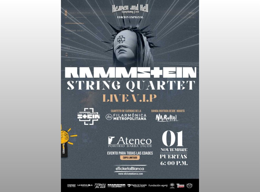 El poder y misticismo de Rammstein llega en un show intimo VIP con un formato de talla internacional, Stein (Uno de los más grandes tributos a Rammstein de Colombia) junto a un cuarteto de cuerdas de la filarmónica metropolitana darán vida a una noche inolvidable en la ciudad de Medellín con los grandes éxitos de la banda alemana, un show con una puesta en escena llena de arte y teatro.